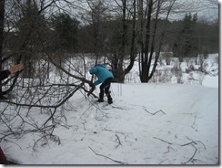 We knew there was to be no rest for the wicked but we didn’t realize how soon the wicked would have to get moving…No sooner had we enjoyed a fabulous lunch of soup and salad but we were encouraged to get our coats….we were off to snow shoe. The Australian was so happy to find that both Kathi and Elizabeth were also expecting BZ to produce tennis racquets and I think we hid our collective surprise very well when she produced these wonderful modern snow shoes that had no resemblance to a tennis racquet….but I can say we had an absolute ball!!! (sorry had to put that in)….